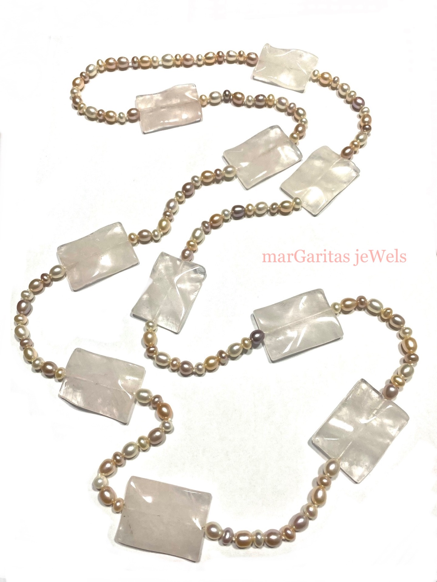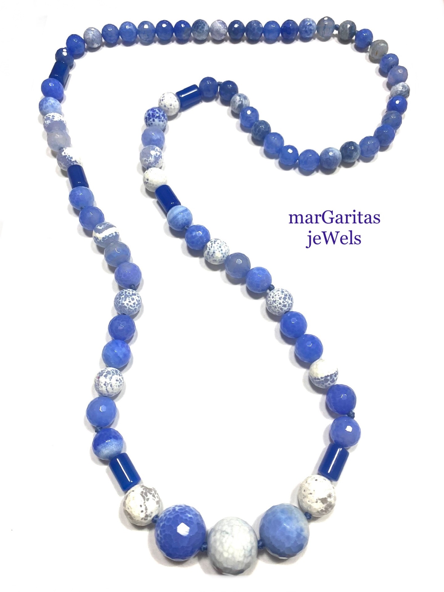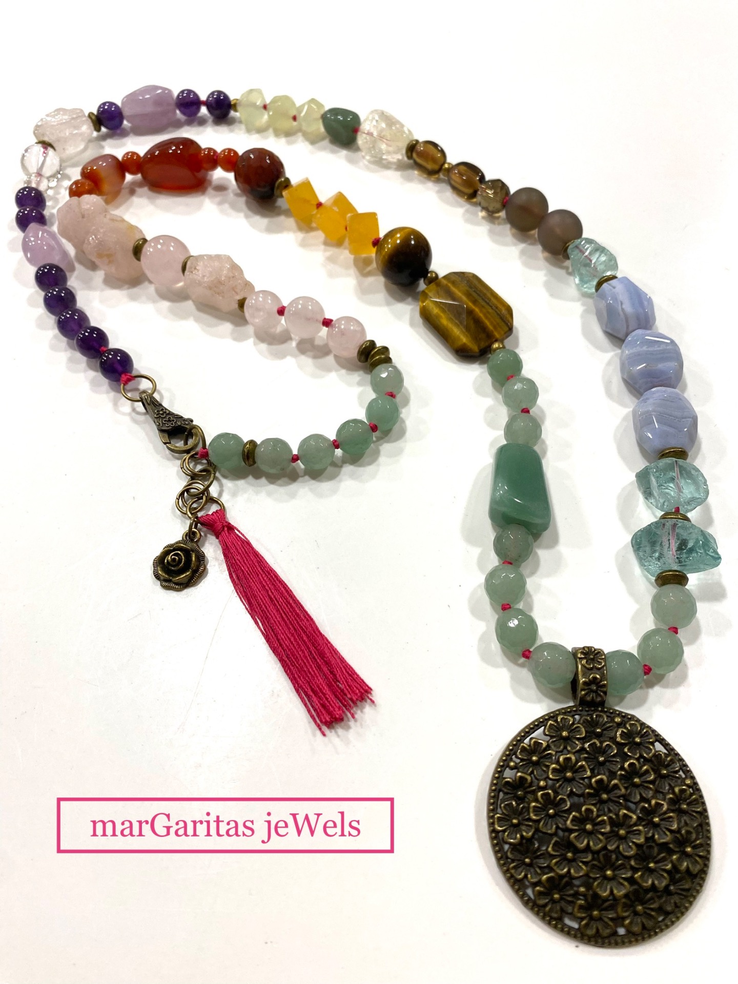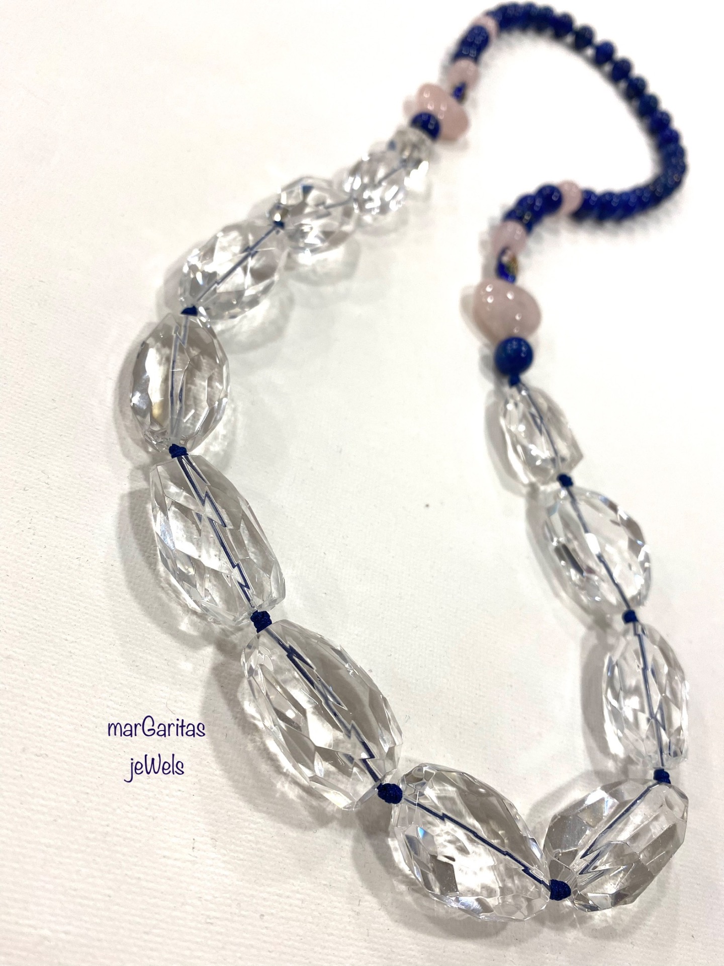 Collar largo SWEET todo anudado artesanalmente. Diseño propio by @margasatelier Piedras: Cuarzo blanco y Rosa y Lapislázuli. Material: Cordón de naútico para anudar. Metal: Bisutería color oro viejo y esmalte. Medida: 85cm aprox.