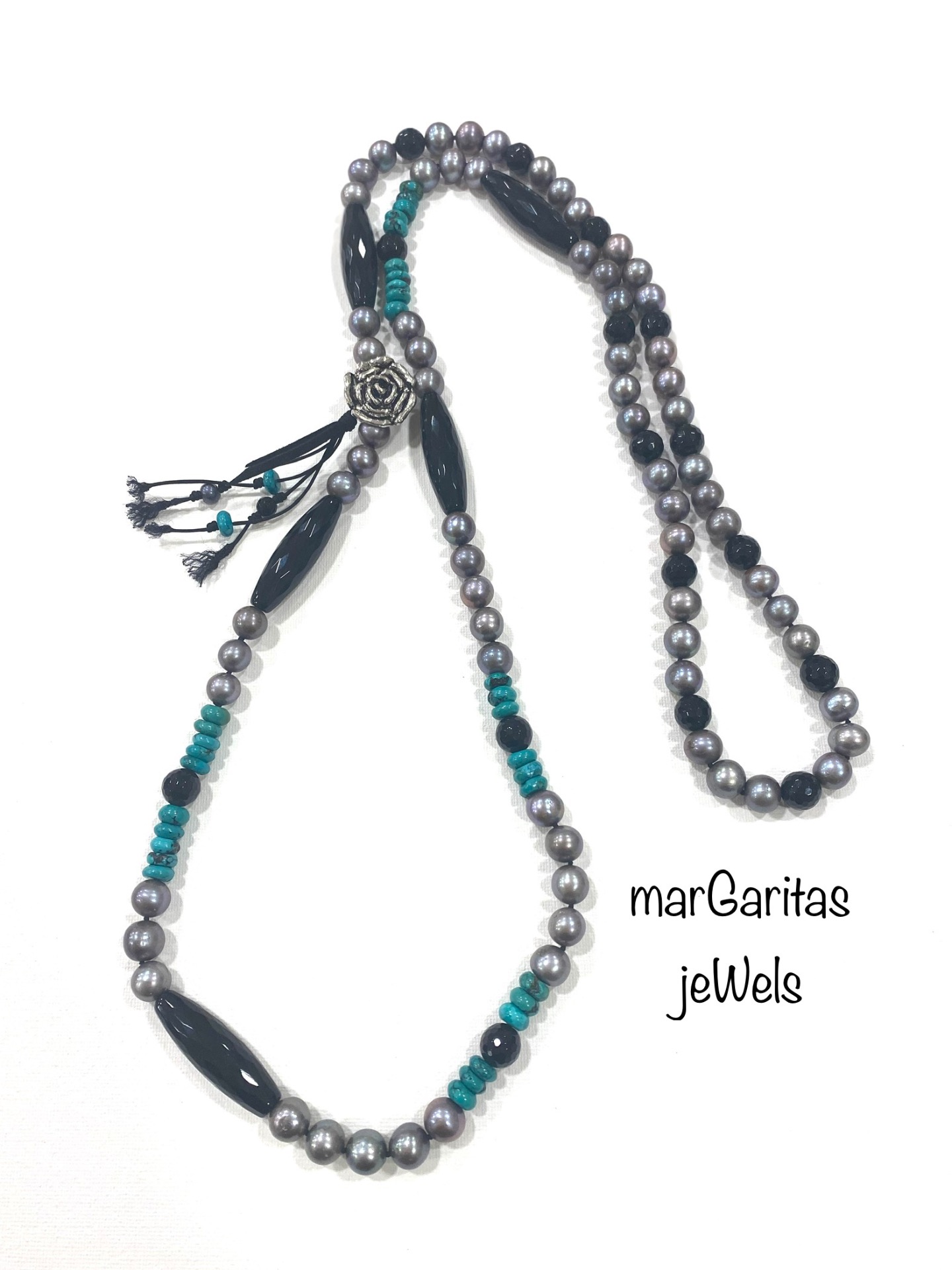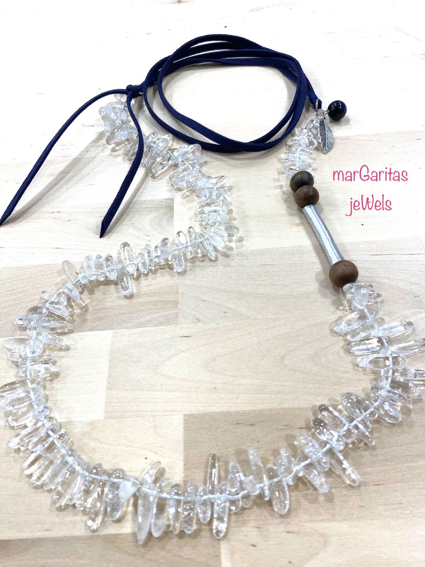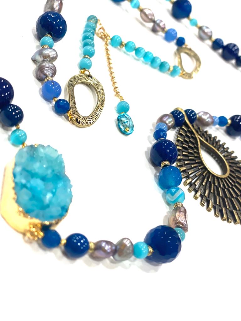 Collar largo SWEET todo anudado artesanalmente. Diseño propio by @margasatelier Piedras: Cuarzo blanco y Rosa y Lapislázuli. Material: Cordón de naútico para anudar. Metal: Bisutería color oro viejo y esmalte. Medida: 85cm aprox.