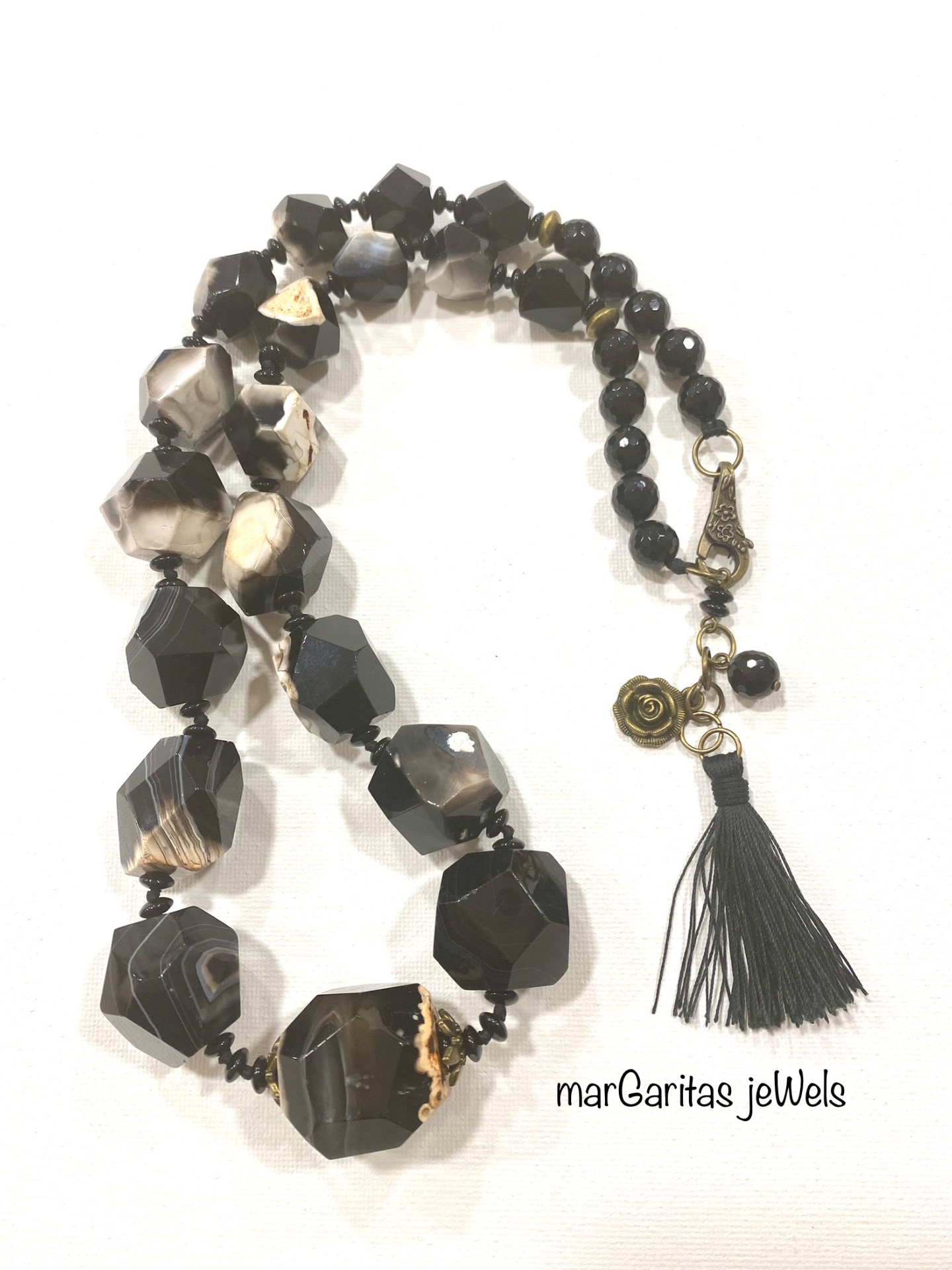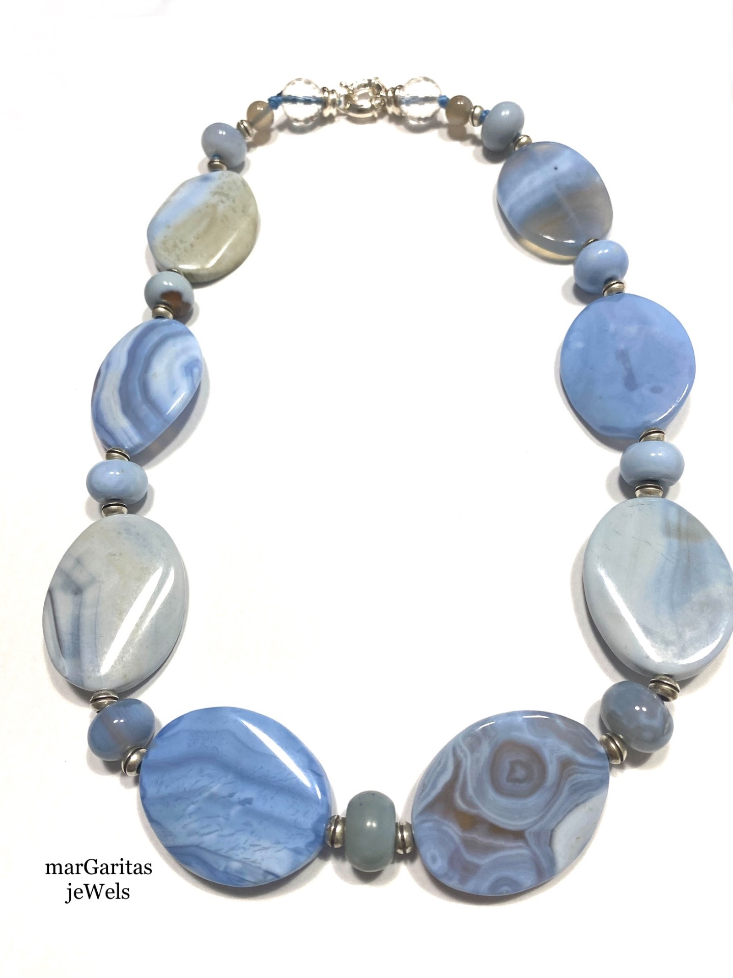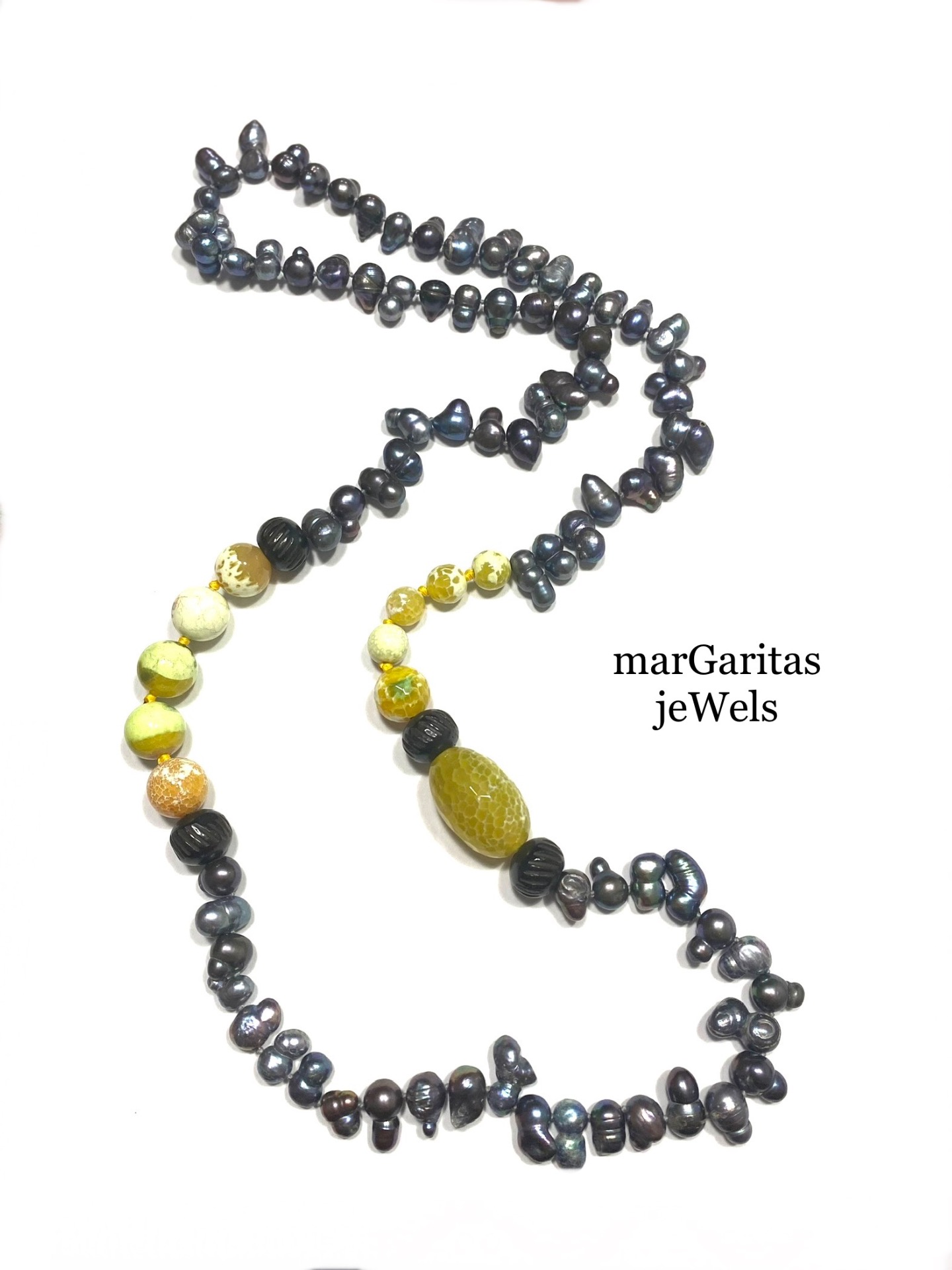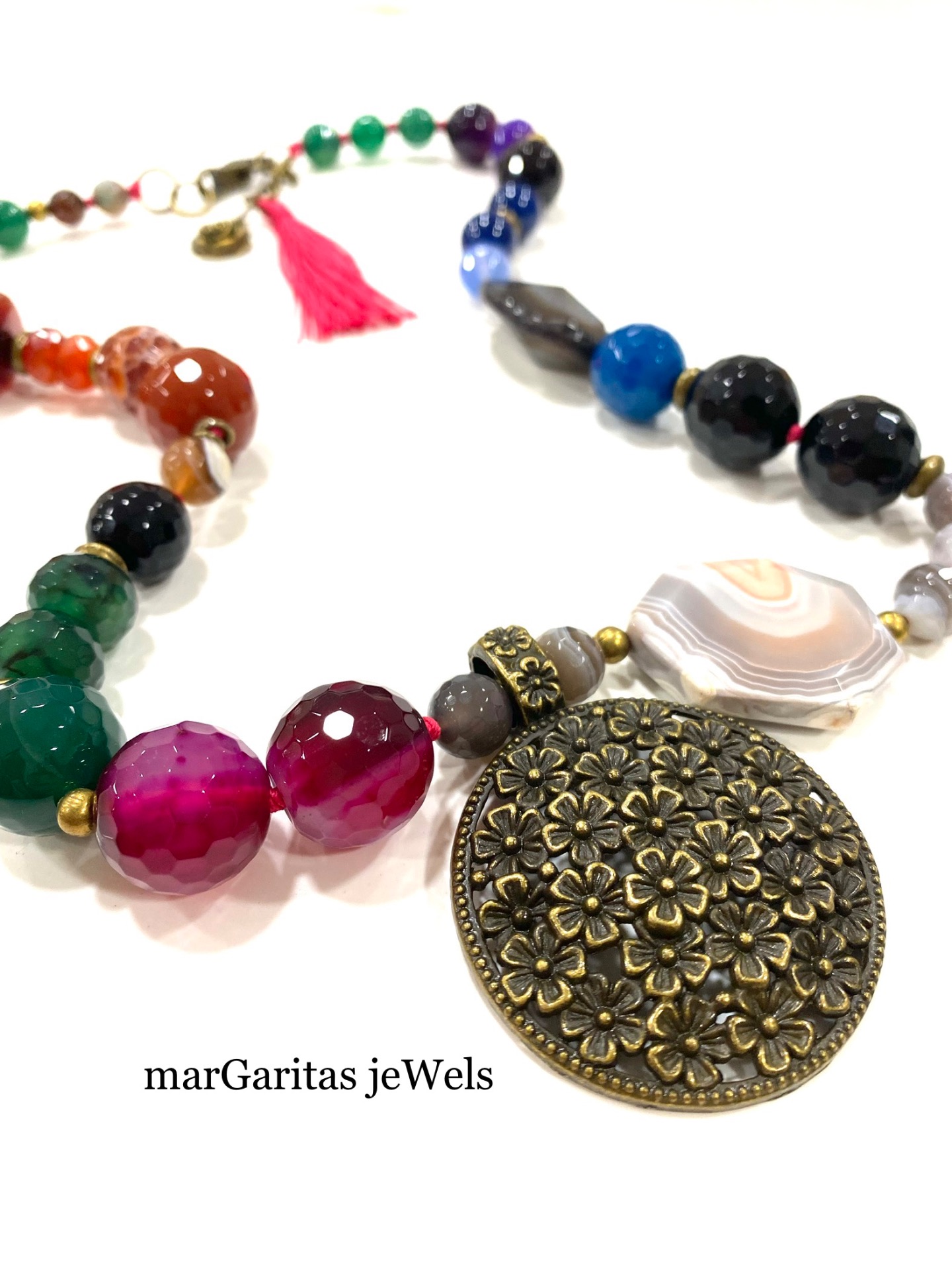 Collar largo SWEET todo anudado artesanalmente. Diseño propio by @margasatelier Piedras: Cuarzo blanco y Rosa y Lapislázuli. Material: Cordón de naútico para anudar. Metal: Bisutería color oro viejo y esmalte. Medida: 85cm aprox.