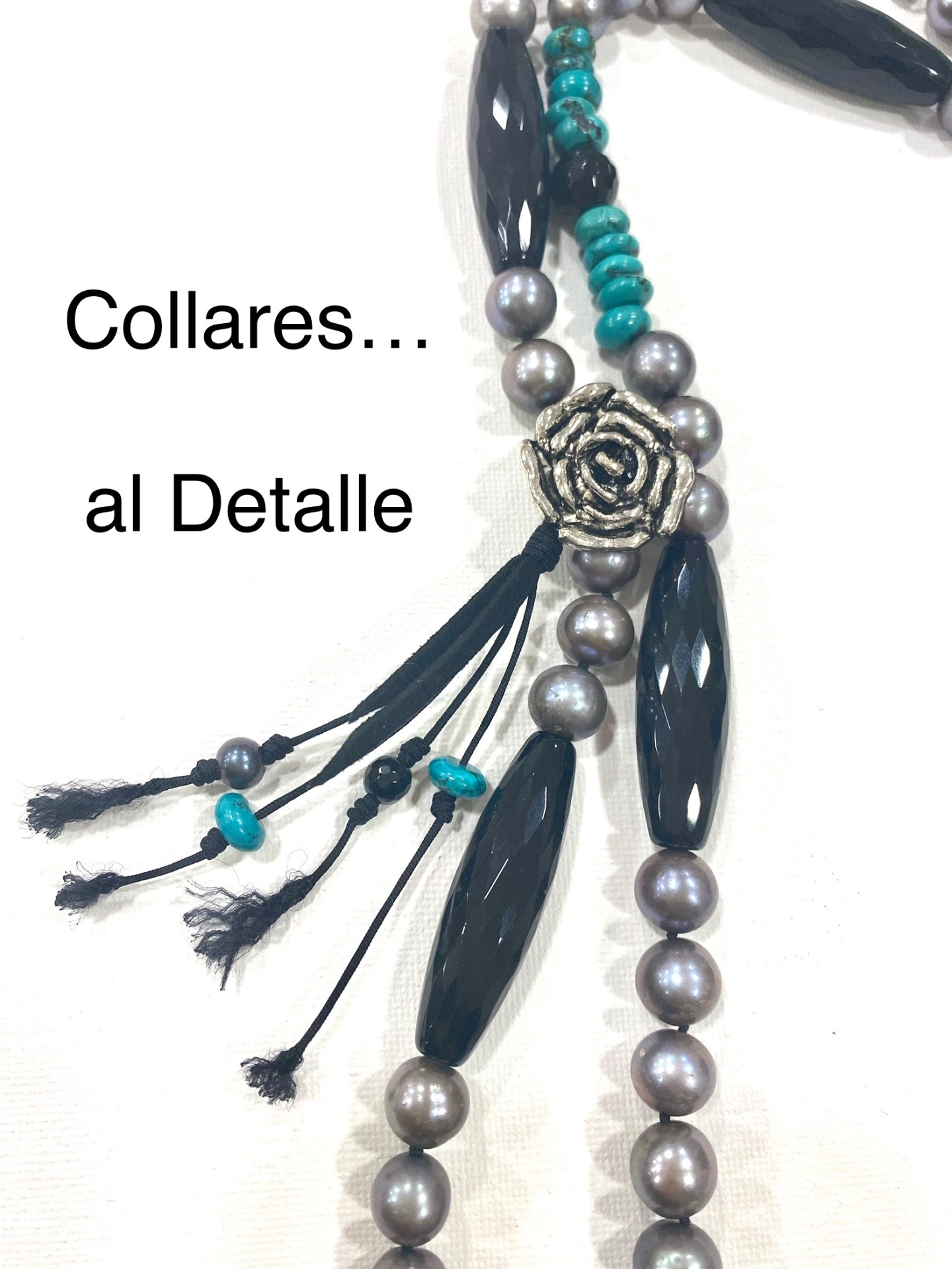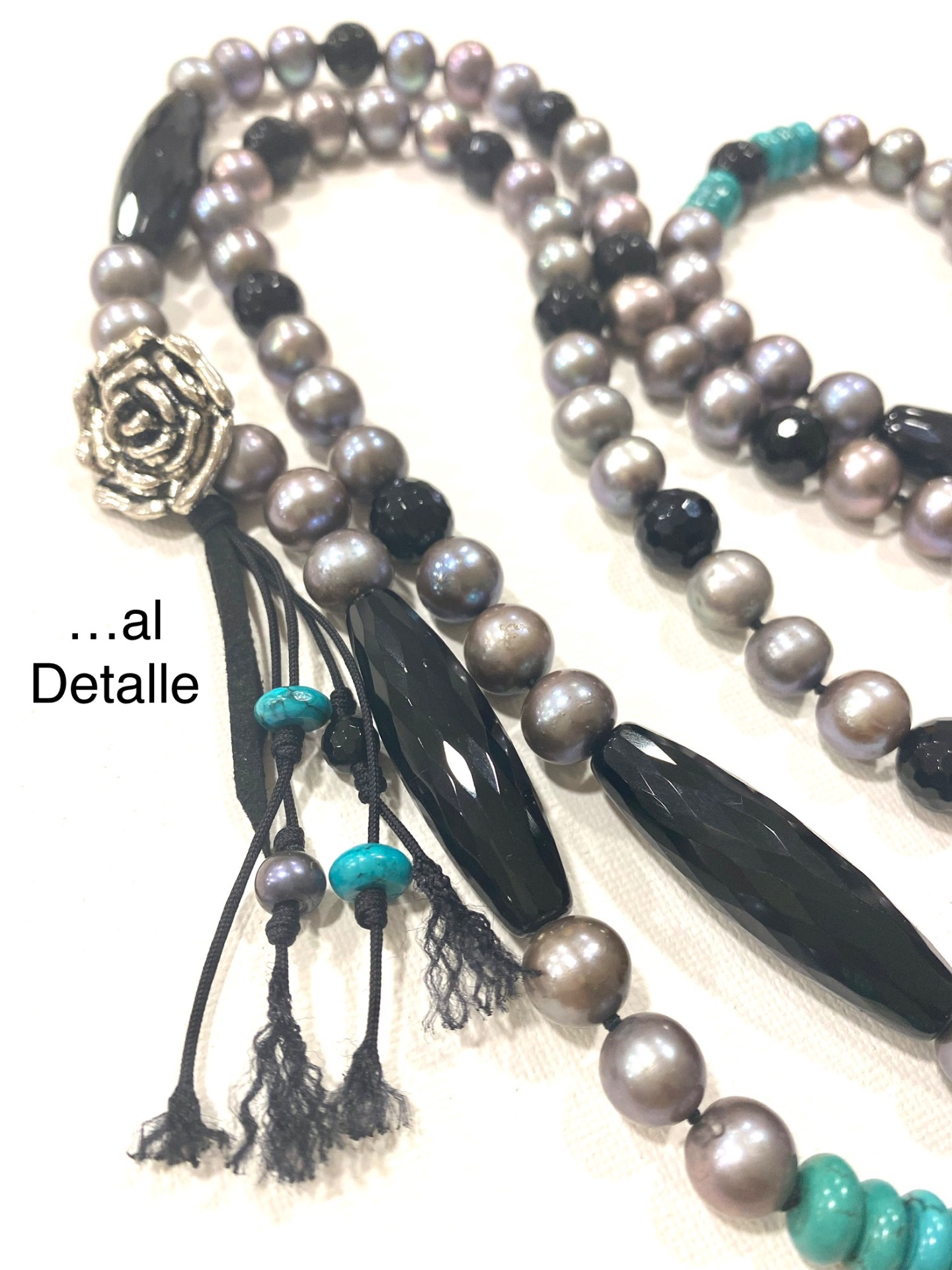 Piedras: Perla de rio gris, Turquesa natural y Ónix