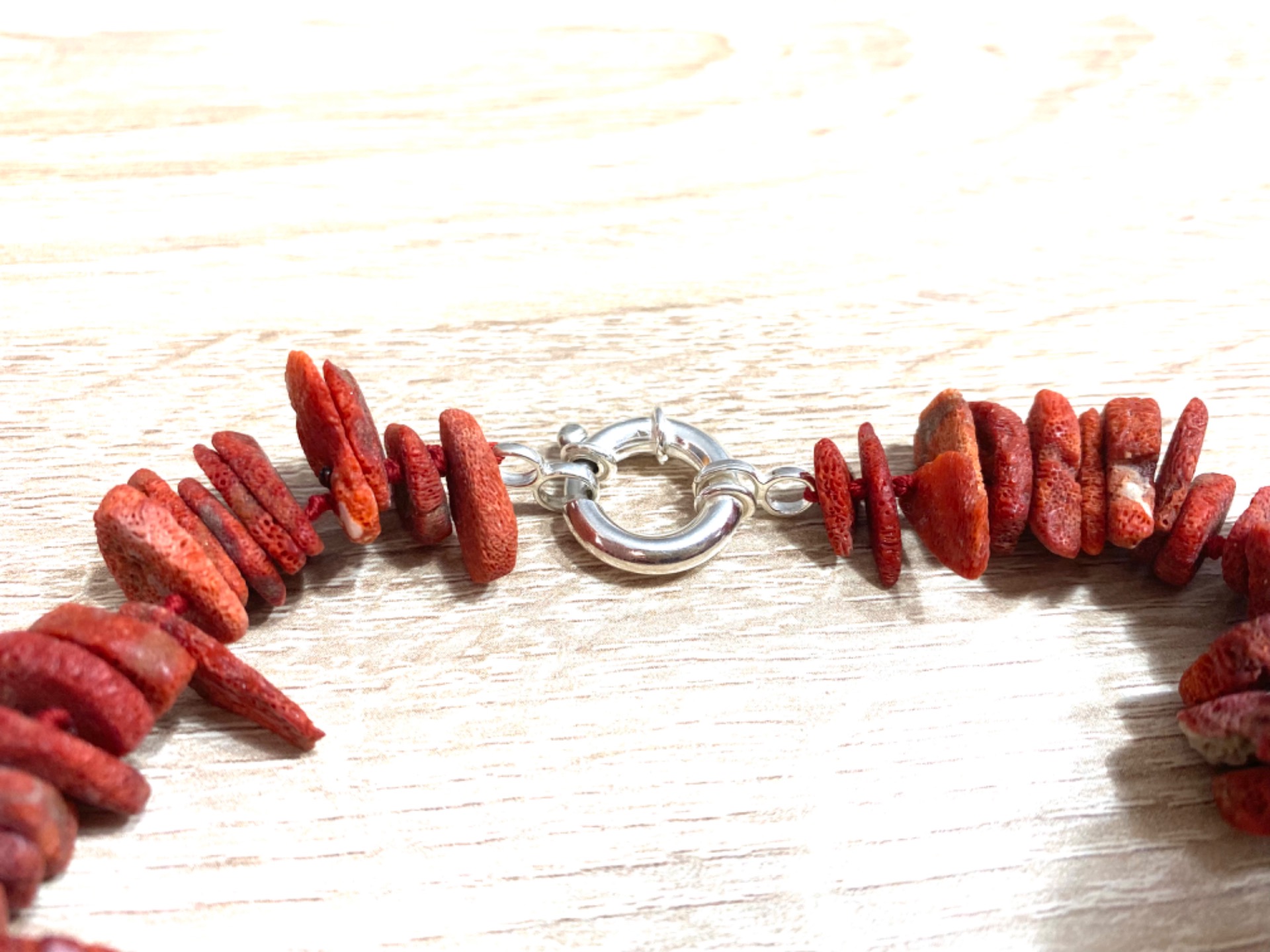 Collar largo CORAL BAY todo anudado artesanalmente con cierre de plata.