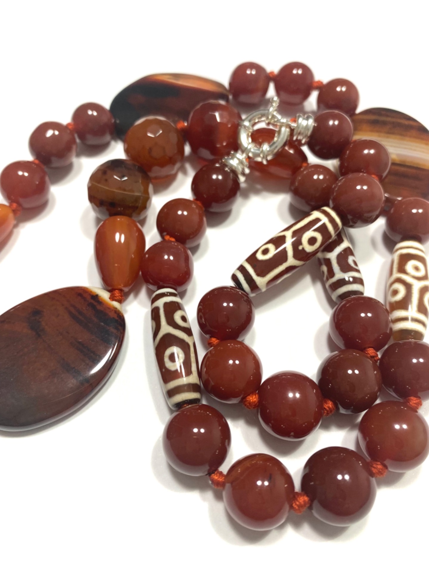 Collar largo TIBET todo anudado artesanalmente con cierre.